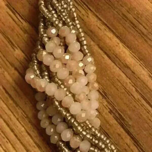 Beautiful pearl and rose quartz handmade strand necklace, 14 strands. Can be worn twisted as well as straight.
