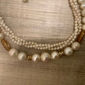 Vintage pearl chocker with gold amber colored beads. Gold colored clasp. Excellent condition.