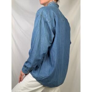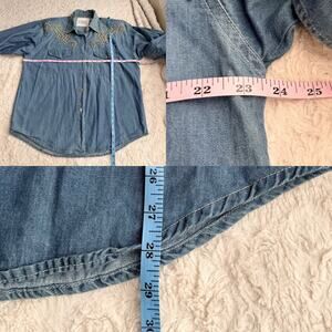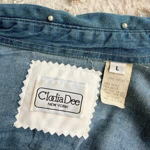 Vintage pearl studded denim button-down shirt blouse Clodia Dee cache 80s 90s L