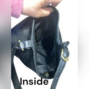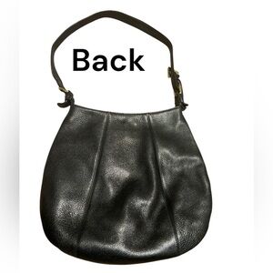 Lovely black pebbled leather GUESS bag. Shoulder strap approximately 13 inches. Inside is one large compartment with a small zippered pocket. Magnetic closure.
