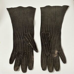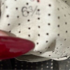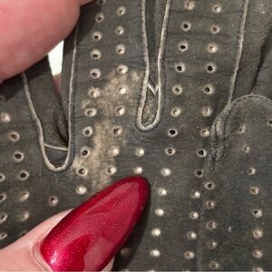 Does show some wear please see photos, some discoloration of the leather but no holes