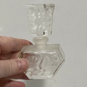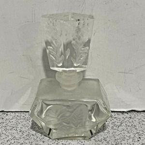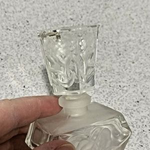 Vintage perfume bottle & stopper clear crystal & frosted glass scent container