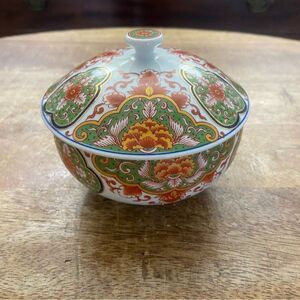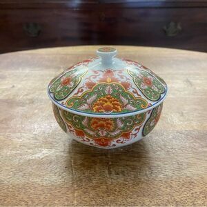 Vintage petite Imari style Asian lidded bar or bowl accent grand millennial