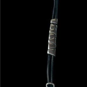 Fabulous very heavy 7 pryamid shaped pewter beads on a Double leather black cord, heavy slide buckle. Up to 9” long, unisex, biker style. Please see all photos for full description.