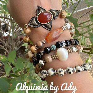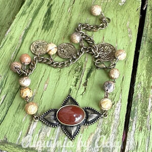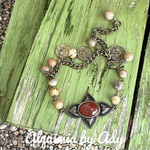 Vintage picture jasper multiple charm rustic adjustable bracelet/maximalist fall