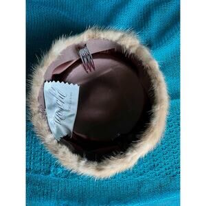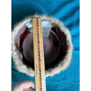 Vintage pill box hat fur with combs 6in wide and 2.25in tall