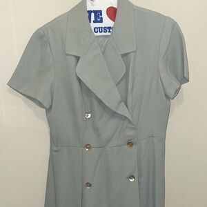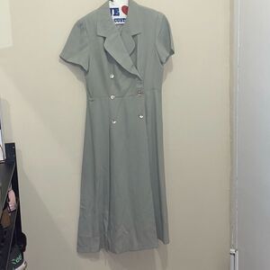 Vintage pin up double breasted button down light green a line dress petites