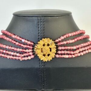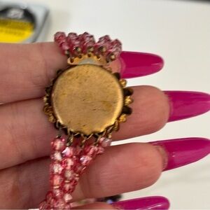 Vintage pink glass crystal, rhinestone lace memory wire unique design