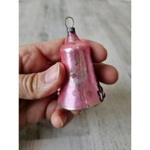 Vintage pink glitter tree bell beaded ornament Xmas tree mercury glass