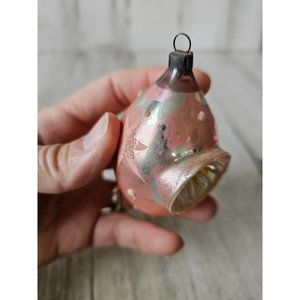 Vintage pink indent reflector shooting star glass ornament Xmas tree
