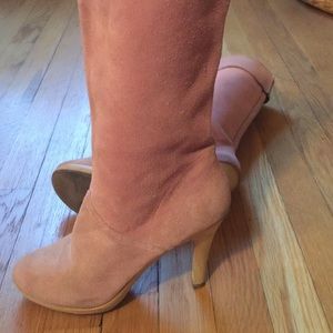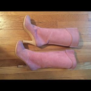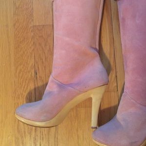 Pink suede vintage boots. Can be worn folded as indicated in the pictures or up. 4 inch wooden heel. Could use a cleaning. 🚫lowballing