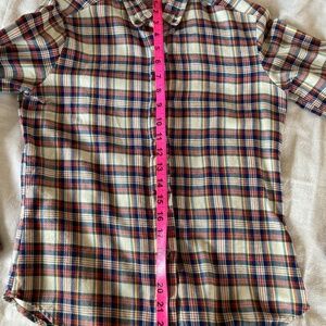 Amazing vintage plaid button-down shirt, made in USA. Super soft, good vintage condition with a bit of wear around the collar. Size petite small.