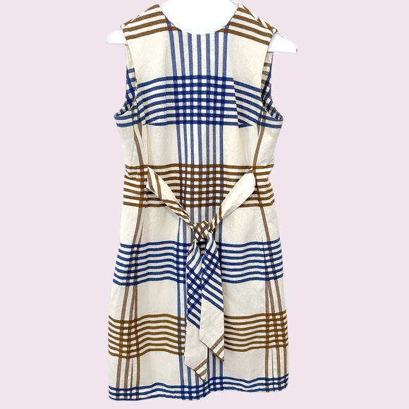 Genuine 60s vintage garden party a line dress in a Burberry-esque simple plaid. Has tie around the waist, metal zip in back. No tags, fits around a M, measurements pictured. Good vintage condition, has slight underarm discoloration pictured.