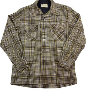 Vintage plaid wool JCPenney button front flannel. 1970s/80s era. Made in Korea. 70% wool. High quality. Two front chest pockets. Tagged as a medium. 22 inches pit to pit, 29 inches long. No rips or tears. Smoke and pet free home.