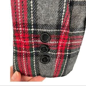 Vintage plaid wool blend three button blazer shoulder pads
