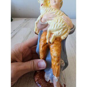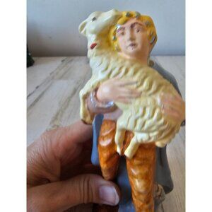 Vintage plaster shepherd sheep nativity statue figurine boy