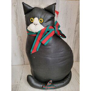 Vintage plush black tuxedo Cat santa claus hat home decor xmas