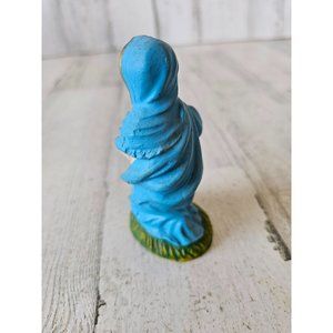 about 4-in tall by 2 in by 2.5 in, good color and mild wear on paint