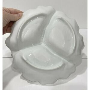 Vintage porcelain center handle server bowl 3-part vegie display white & floral