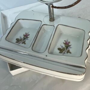 Vintage porcelain floral vanity with 2 sided mirror. The mirrors and metal frame show wear. Please look at all pics as they are part of description. Midcentury