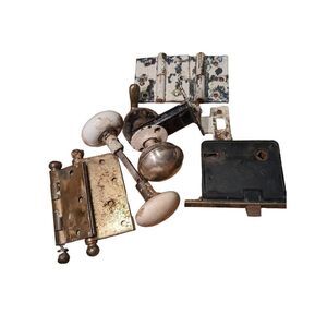 Antique door knobs with some of the hardware. In fair condition could still use cleaning