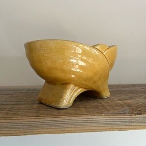 Vintage pottery planter. Mustard yellow. No chips or cracks. No identification marks. Is marked USA on the leg. This would be the perfect succulent planter! Add a couple of your cute favorites and set on your desk or bedside table. Possibly Shawnee?