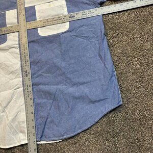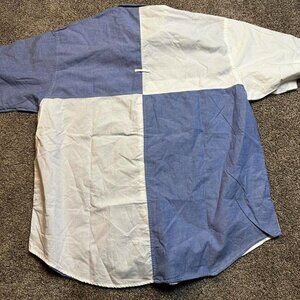 Vintage preppy colorblock blue and white short sleeve button shirt size large