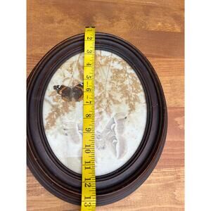Vintage pressed butterfly and flower simple oval wood frame bubble glass