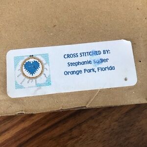 Darling primitive counted cross stitch art piece.