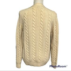 pure wool cream cable knit button front vintage cardigan sweater