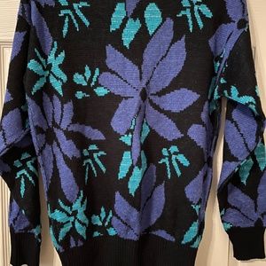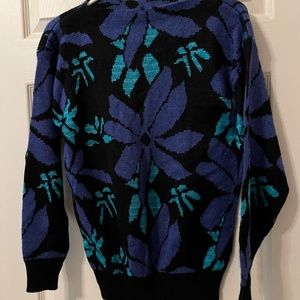 Vintage Andrew St. John purple teal floral boat neck sweater. 100% acrylic. No size tag, probably M/L see measurements. Vintage condition.