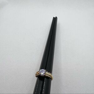 Vintage purple round jewel DAC ring on gold tone band with rhinestones - 9.75