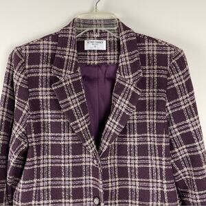 Vintage purple tan plaid wool tweed button preppy academia blazer jacket 12P