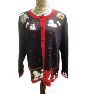 Ramie cotton blend long sleeve ugly christmas sweater Beased paw print, dogs and bones in crocheted boxes measurement buttoned C:21.5” L:26” sleeve 23.5”