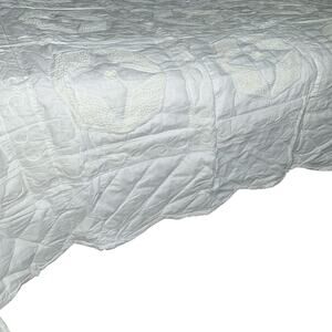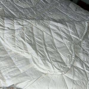 Vintage queen handmade quilted crochet appliqué white scalloped edge comforter