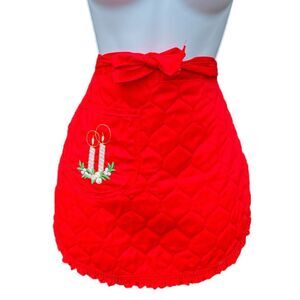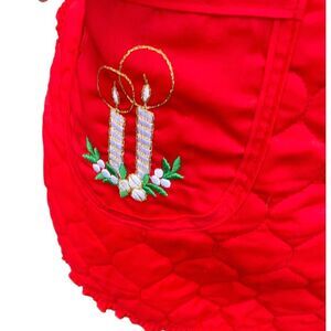 Vintage quilted red Christmas embroidered pocket apron. One pocket with embroidered candles.