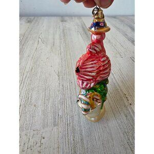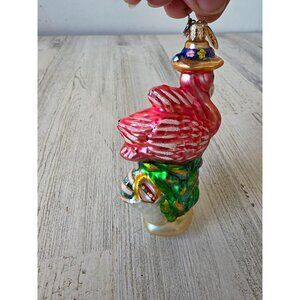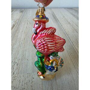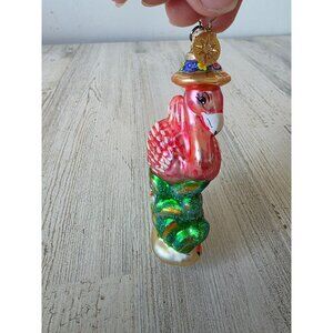 Vintage radko flamingo beach AS IS tropical ornament bird glass basket glitter Hawaiian Xmas tree