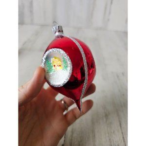 Vintage radko house cabin glitter teardrop red ornament Xmas tree