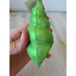 Vintage radko mint green sea swirl seashell shell ornament glass glitter Beach wine Xmas tree