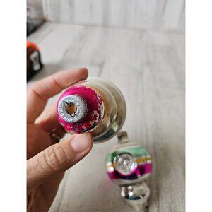 Vintage radko shiny Brite UFO striped red green tree ornament mercury glass reflector double indent
