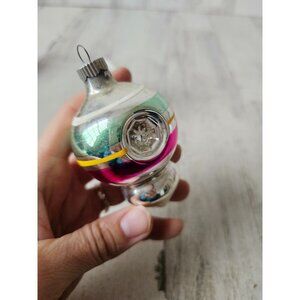 Vintage radko shiny Brite UFO striped red green tree ornament mercury glass refl