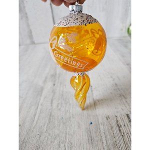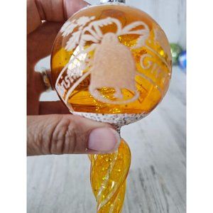 Vintage radko shiny Brite yellow tinsel glitter greetings bell spiral ornament Xmas tree