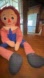 Charming rag doll featuring vibrant red hair and a classic blue outfit. Perfect for adding a nostalgic touch to your home decor.