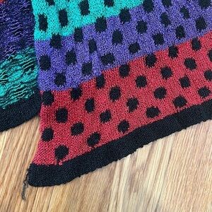 Vintage rainbow striped black polka dot neck scarf knit accessory