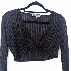 Vintage rampage black sparkly long sleeve bolero top with button detail