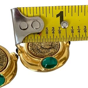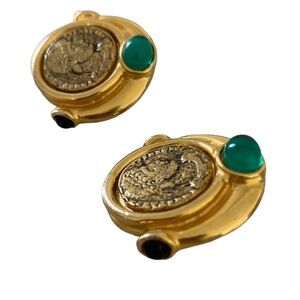 Vintage rare Caralina gold tone clip on Greek revival earrings cabochon coin