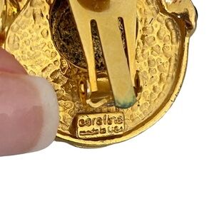 Vintage rare Caralina gold tone clip on roman Greek revival earrings cabochon