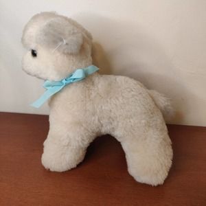 Vintage Stuffed Animal Sheep White Blue Ribbon. STO.