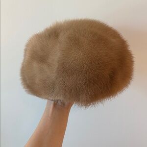 Vintage real fur hat apres ski aspen beret Courchevel NYC glam puffer hat