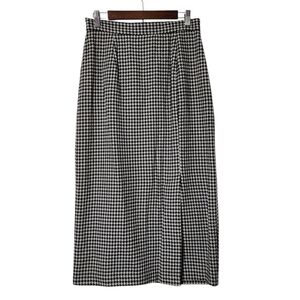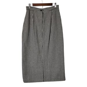 Vintage recycled wool houndstooth black and white checkered long skirt